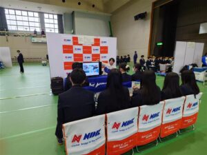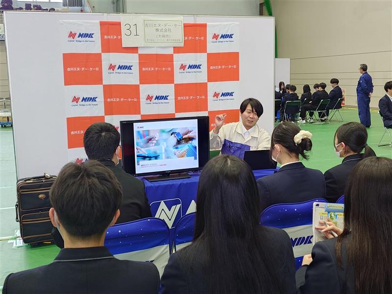 大崎管内の企業、1、2年生の高校生が参加しました。当社の説明には32名の高校生に参加頂けました。20分という短い説明時間で、当社のこと、作っている製品等を知って頂けたと思います。